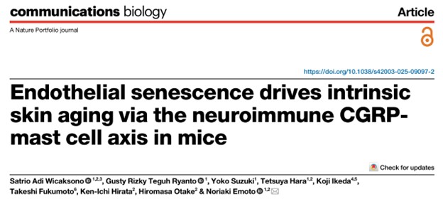 Hasil utama menunjukkan bahwa senesensi pada endotheliocytus menghasilkan SASP yang memicu neuron dermal untuk menghasilkan CGRP. CGRP selanjutnya memicu degranulasi pada mastocytus, yang terkait dengan ciri-ciri penuaan kulit, seperti penipisan dermis, degradasi kolagen, serta perlambatan penyembuhan luka. Intervensi untuk menghambat jalur EC-SASP-CGRP atau menstabilkan mastocytus secara farmakologis terbukti secara signifikan mengurangi tanda-tanda penuaan tersebut. Temuan ini menunjukkan bahwa senesensi vaskular bukan sekadar fenomena pembuluh darah semata, tetapi juga regulator awal penuaan kulit melalui interaksi kompleks antara sistem vaskular dan sistem imun melalui lintasan neuroimun.