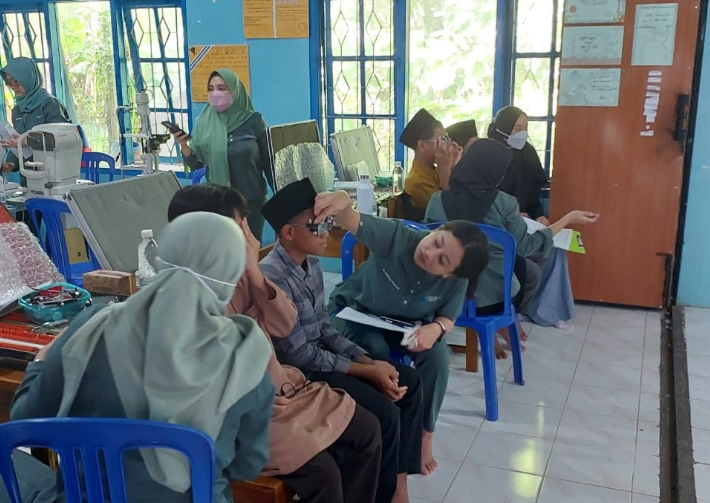 Sebanyak 130 peserta mengikuti layanan kesehatan tersebut, yang terdiri atas 118 santri dan santriwati serta 12 musyrifah atau pembimbing. Pemeriksaan mata menjadi fokus utama kegiatan dengan tujuan melakukan deteksi dini gangguan penglihatan yang kerap dialami anak usia sekolah, seperti gangguan refraksi berupa rabun jauh, rabun dekat, maupun astigmatisme. Selain pemeriksaan mata, tim medis juga memberikan layanan pemeriksaan kesehatan umum, antara lain penanganan keluhan kulit gatal yang berkaitan dengan scabies atau alergi, serta pemeriksaan kesehatan gigi untuk mendeteksi gigi berlubang.
