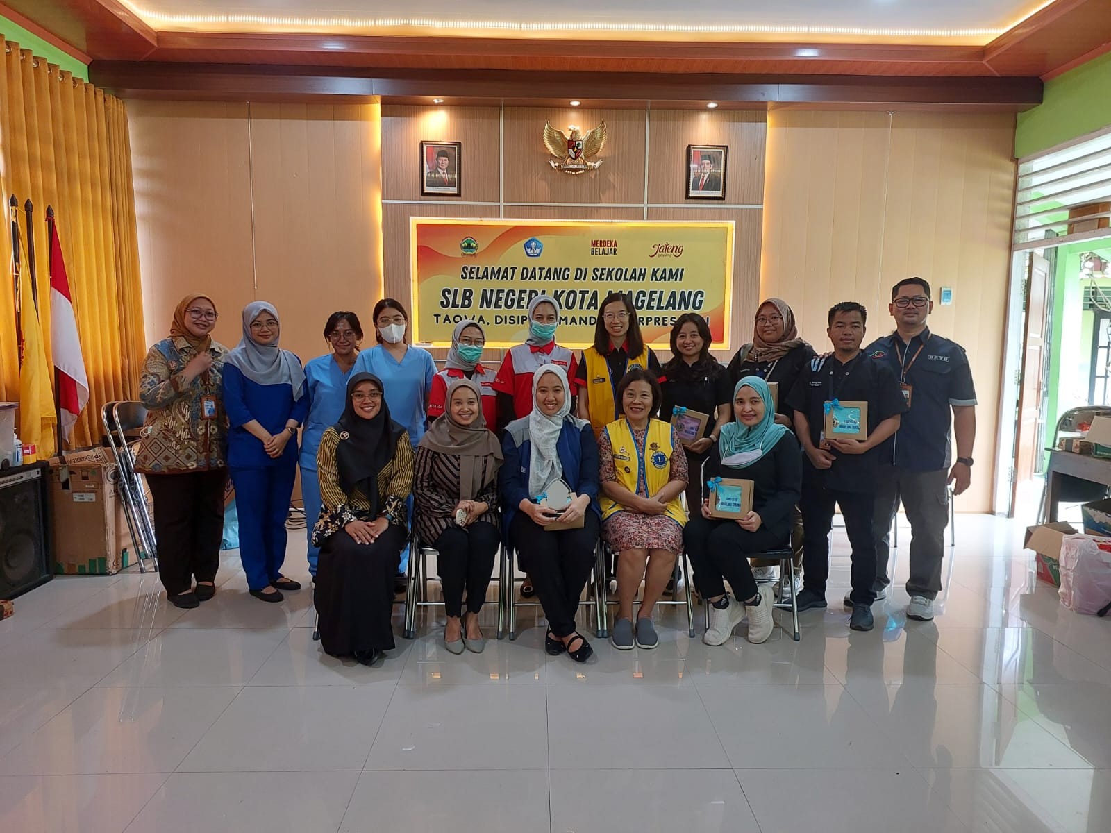 FK-KMK UGM. Residen Ilmu Kesehatan Mata, Fakultas Kedokteran, Kesehatan Masyarakat, dan Keperawatan Universitas Gadjah Mada (FK-KMK UGM) berkolaborasi dengan Lions Club Magelang Taruna dan Klinik Utama Mata Dr. YAP Magelang dalam menyelenggarakan kegiatan pemeriksaan kesehatan mata serta pemberian kacamata gratis. Kegiatan ini dilaksanakan di Sekolah Luar Biasa (SLB) Negeri Kota Magelang dengan sasaran utama siswa usia sekolah yang membutuhkan layanan kesehatan mata. Pelaksanaan kegiatan berlangsung pada Selasa, 27 Mei 2025, sebagai bagian dari upaya deteksi dini dan peningkatan akses layanan kesehatan mata bagi anak-anak di wilayah Magelang.