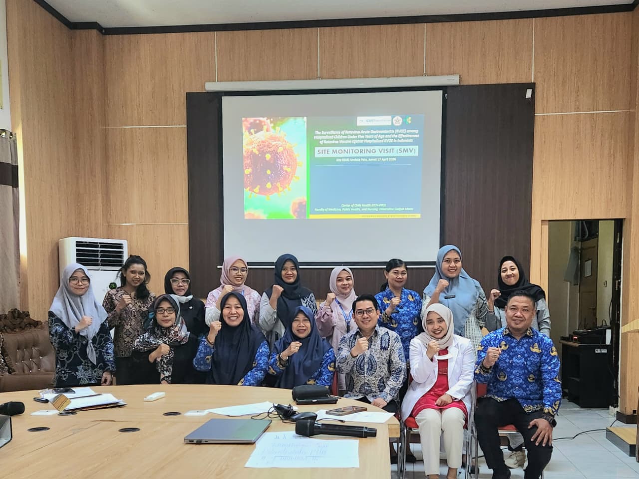 FK-KMK UGM. Pusat Kajian Kesehatan Anak (PKKA-PRO), Fakultas Kedokteran, Kesehatan Masyarakat, dan Keperawatan Universitas Gadjah Mada (FK-KMK UGM) menyelenggarakan kegiatan Source Document Verification (SDV) on Site dan Site Monitoring Visit (SMV) sebagai bagian dari penguatan mutu penelitian klinis di Indonesia. Kegiatan ini dilaksanakan di RSUD Undata Palu dengan melibatkan tim peneliti lintas institusi dalam rangka memastikan kualitas pelaksanaan studi surveilans rotavirus pada anak. Kegiatan yang berlangsung pada 17 April 2026.