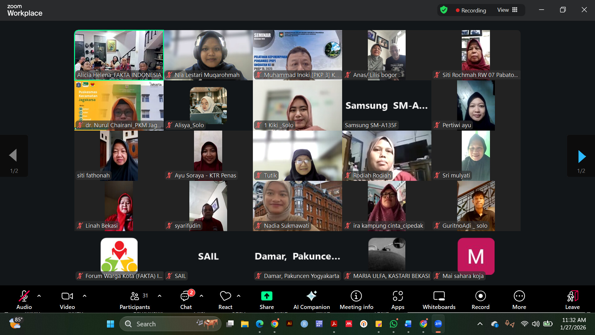 FK-KMK UGM. Pusat Perilaku dan Promosi Kesehatan FK-KMK UGM berpartisipasi dalam diskusi lanjutan Kampung Sehat sebagai bagian dari penguatan program promosi dan pencegahan penyakit tidak menular berbasis komunitas. Kegiatan ini dilaksanakan secara daring melalui Zoom Meeting dengan melibatkan berbagai pemangku kepentingan lintas wilayah di Indonesia dan difasilitasi oleh Forum Warga Kota (FAKTA) Indonesia. Diskusi lanjutan Kampung Sehat berlangsung pada Selasa, 27 Januari 2026, dengan fokus pada pengembangan edukasi masyarakat untuk pencegahan obesitas dan diabetes melalui pendekatan kolaboratif dan berkelanjutan.
