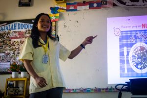 Mahasiswa Program Studi Keperawatan yang lainnya juga menceritakan pengalaman KKN-PPM di pulau Hiri, Kota Ternate, Maluku Utara. Bersama tim Bumi Hiri, Fadhilah Rohadatul ‘Aysy melakukan pengabdian di bidang kesehatan. Terlebih di sana dinamika pelayanan dan edukasi kesehatan di daerah yang aksesnya cukup menantang, karena pelayanan kesehatan bagi masyarakat setempat belum berjalan dengan optimal.