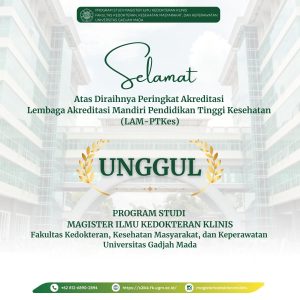 FK-KMK UGM. Program Studi Magister Ilmu Kedokteran Klinis (MIKK) Fakultas Kedokteran, Kesehatan Masyarakat, dan Keperawatan Universitas Gadjah Mada (FK-KMK UGM) berhasil meraih predikat Akreditasi Unggul