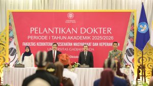 FK-KMK UGM. Program Studi Kedokteran, Fakultas Kedokteran, Kesehatan Masyarakat, dan Keperawatan (FK-KMK) UGM melaksanakan Pelantikan Dokter Periode I Tahun Akademik 2025/2026. Sebanyak 47 dokter dilantik