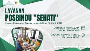 FK-KMK UGM. Unit kerja Health Promotion University (HPU) Fakultas Kedokteran, Kesehatan Masyarakat, dan Keperawatan Universitas Gadjah Mada (FK-KMK UGM) secara rutin mengadakan kegiatan Posbindu “SEHATI”